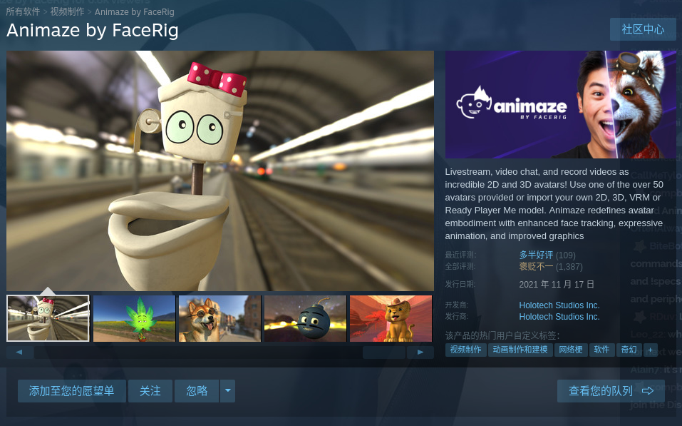 FaceRig是流行于欧美的老牌虚拟形象软件,亮点好像是优秀的面捕算法?是付费软件。
