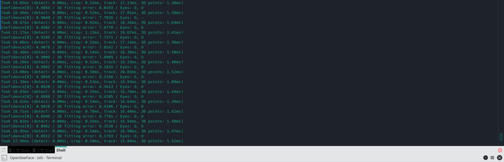 运行后便能在终端上看到面捕的输出信息: