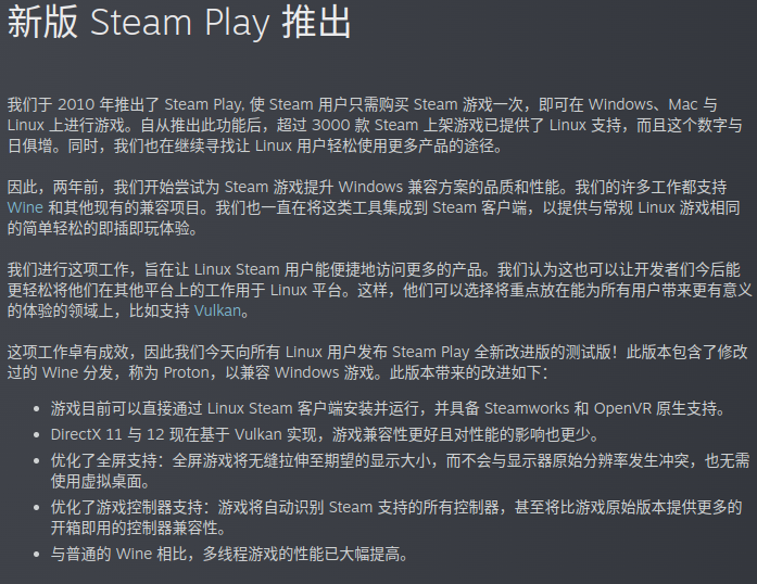 同时,Valve社也有开源一个Wine项目分支–Proton,专为兼容Steam平台上的Windows游戏而开发,且在Steam for Linux上开箱即用。