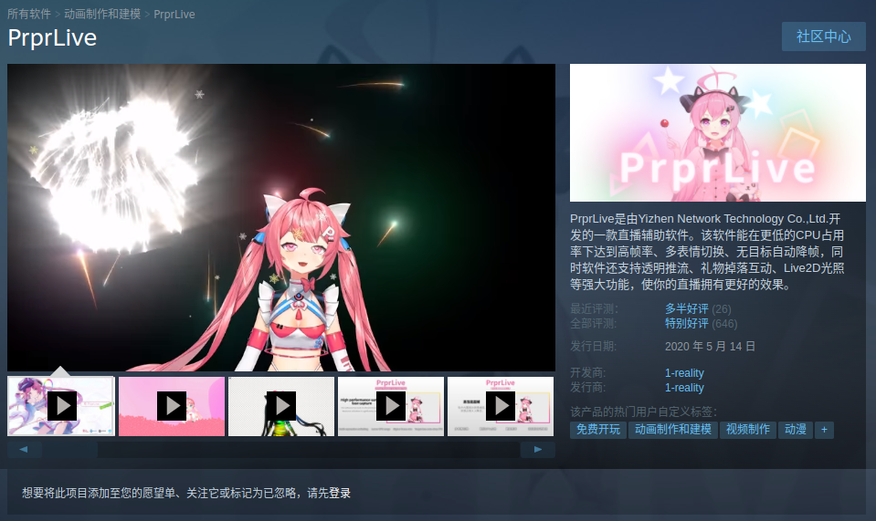 首先是很多Live2D主播都在使用的PrprLive,但我的虚拟形象是3D的,直接排除了这个选项。