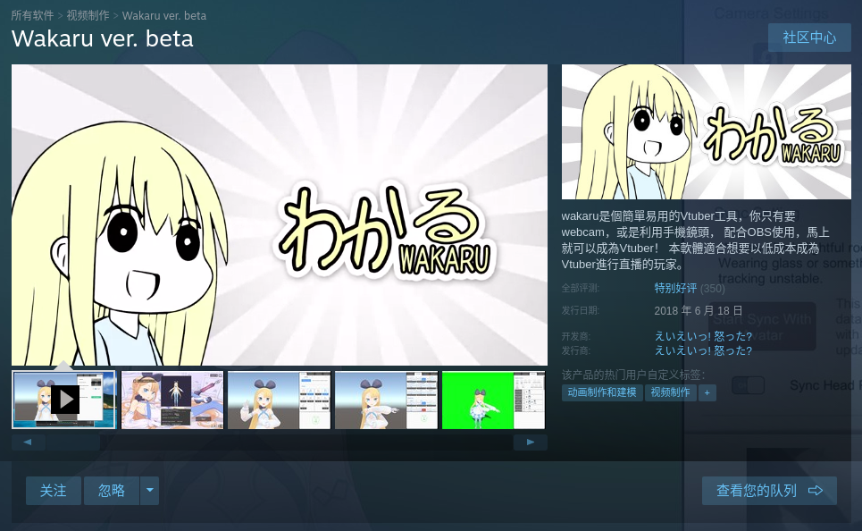 wakaru是個簡單易用的Vtuber工具,你只有要webcam,或是利用手機鏡頭, 配合OBS使用,馬上就可以成為Vtuber! 本軟體適合想要以低成本成為Vtuber進行直播的玩家。