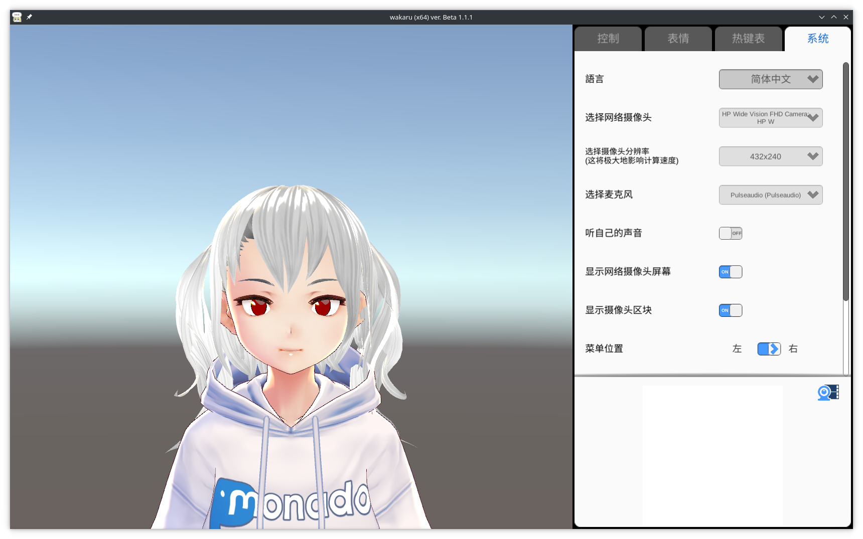 事实上,OpenSeeFace还存在与之适配的跨平台开源前端实现–oepnseeface-gd。但我折腾体验过后发现完成度还是太低了,只好投奔闭源的VSeeFace了。